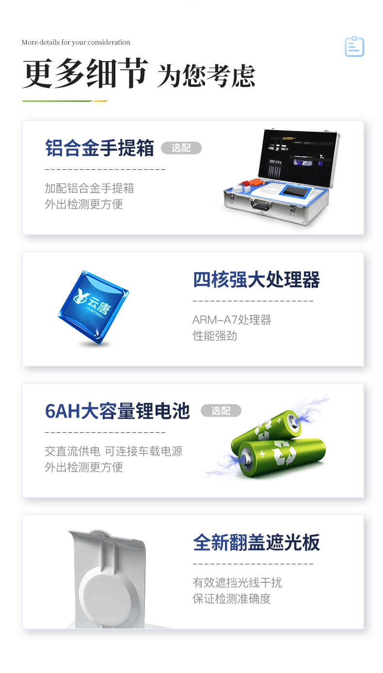 2、仪器检测??楸曜蓟?、智能化,检测项目可随意自由组合。检测箱体内置多个标准检测单元,检测??榭梢缘髡渲?。