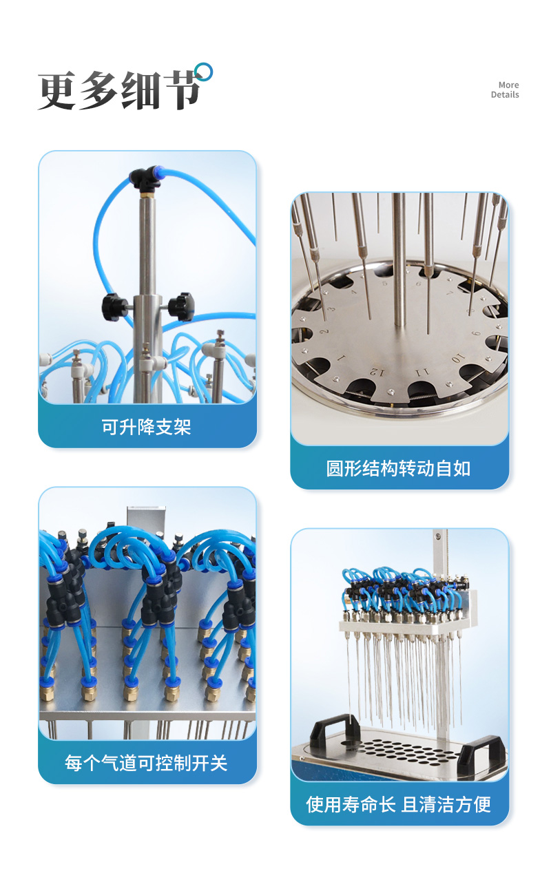 水浴氮吹仪采用吹扫捕集技术,同时可对样品进行控温加热,利用氮气等惰性气体快速、可控、连续地吹到样品表面来达到样品溶液快速无氧浓缩。该方法具有省时、便捷、准确的特点。广泛用于食品安全、医药、农药残留检测、临床药代等领域。