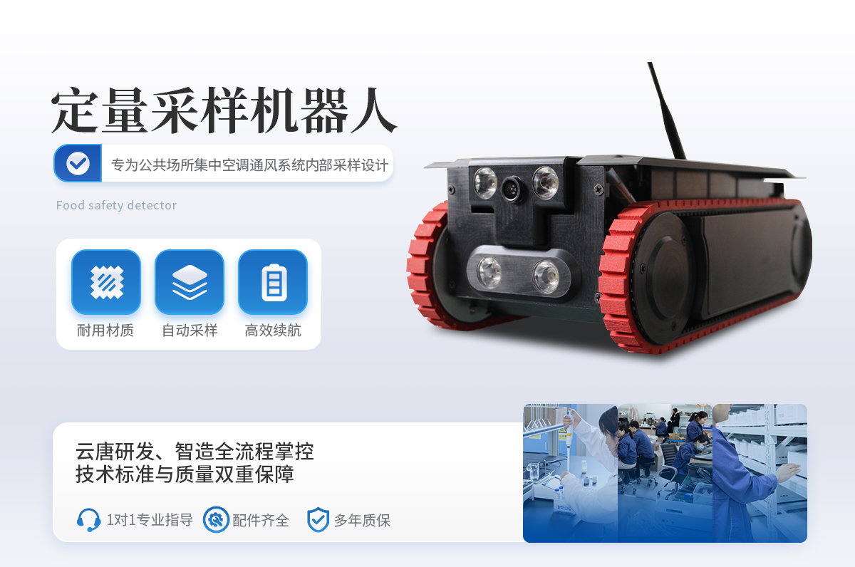 产品简介: 定量采样机器人是一款专为公共场所集中空调通风系统内部采样设计的高精度、便携式智能设备。该产品严格按照《WS 10013-2023公共场所集中空调通风系统卫生规范》、《WS/T 10004-2023公···