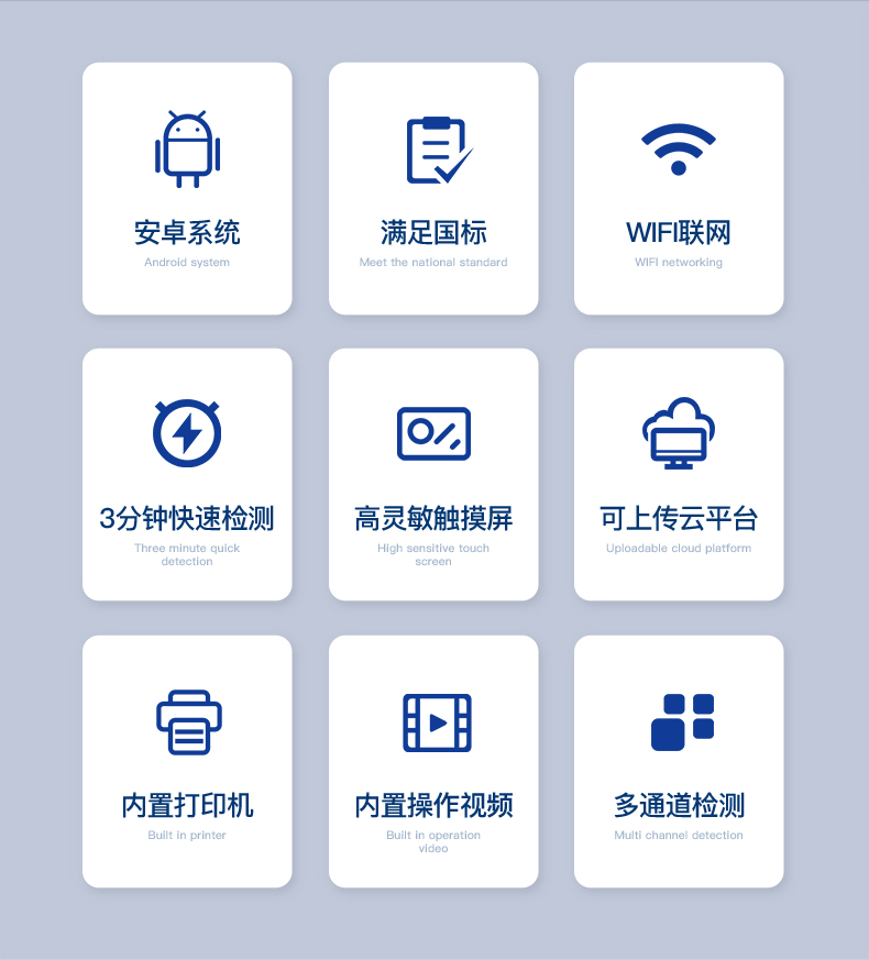 | 1)可加配语音报读功能,人性化指导操作。 | 2)仪器可实现自身加热功能。 | 3)可配置大容量锂电池。 |