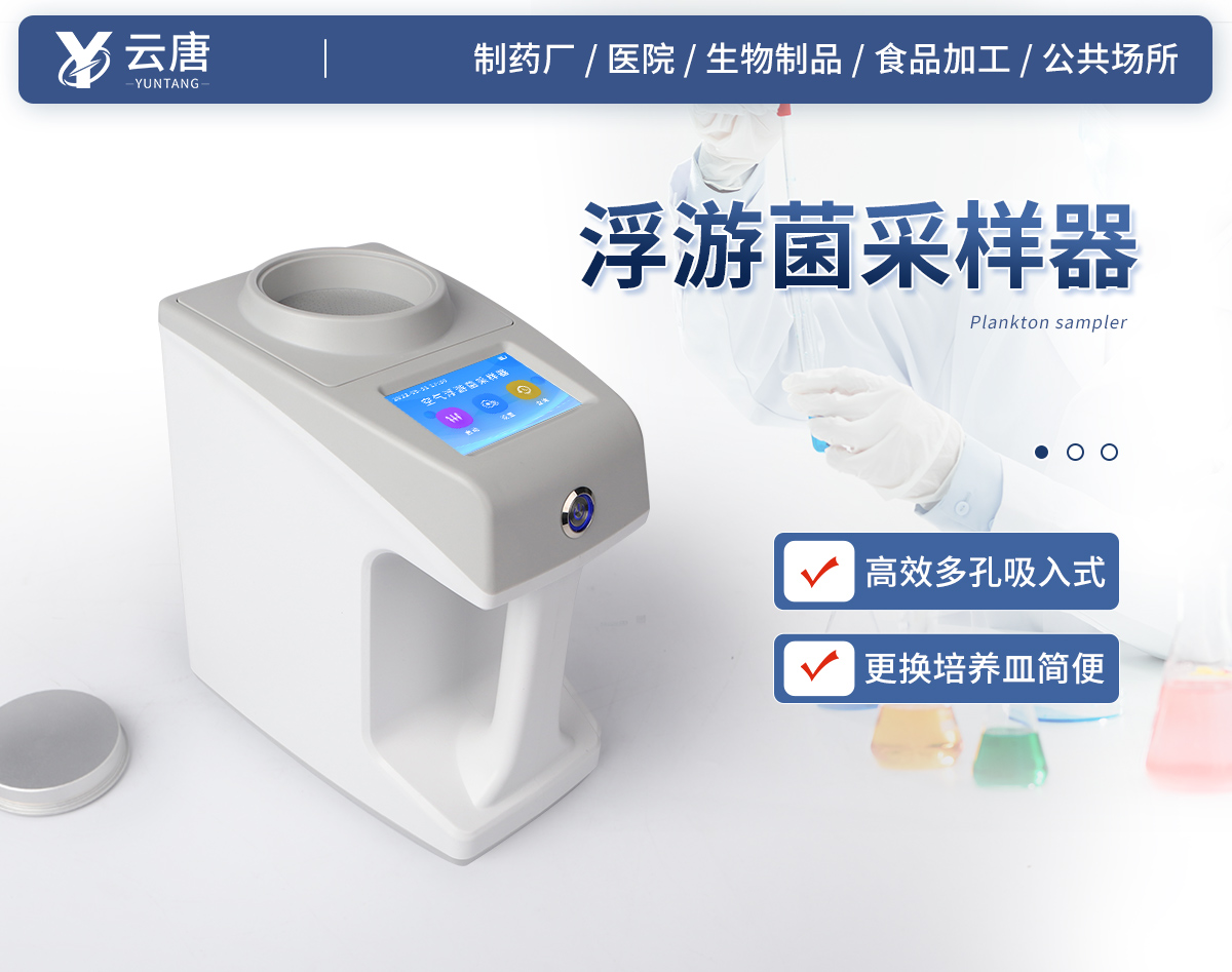浮游空气尘菌采样器是一种**的多孔吸入式尘菌采样器。它根据颗粒撞击原理和等速采样理论设计,采样直接,采样口风速与洁净室内风速基本一致,能更准确地反映洁净室内的微生物浓度。 采样时,带尘菌空气高速通过微孔,被撞击在培养皿内的琼脂表面;采集完成后把琼脂培养皿盖好,这些活体微生物在培养过程中,发生动能再水化过程,高速生长,从而更快得出结果。 本仪器结构独特新颖,分上下两部分,上部分采集口和采样座及气泵,下部分控制器及电池。采样口和外壳采用优质航空铝制造,表面闭孔处理,便于使用前的灭菌消毒。本仪器功能强大,采样量大,收集效率高,性能稳定,操作简便,达到国际同类产品**水平,是各制药厂、医院、生物制品、食品加工、公共场所的检测部门理想的浮游尘菌浓度采集器。