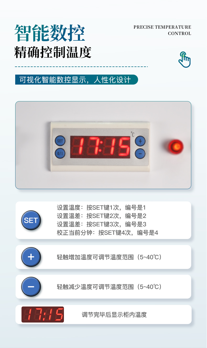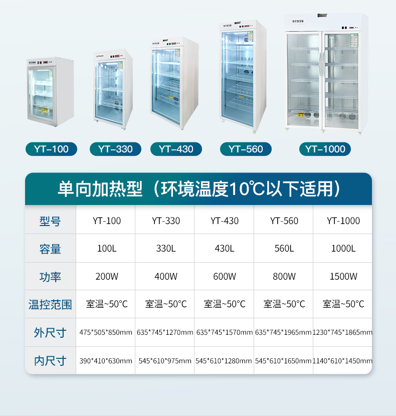| 单门左开型 | 额定容积100L | 控温范围:室温~50℃,单向加热控温型 | 温度显示方式:数显 | 内尺寸:390*410*630mm (长×宽×高) | 外形尺寸:475*505*850mm(长×宽×高) | 工作环境:温度-10℃~35℃。湿度90%RH以下,无腐蚀性气体场合 | 重量:50公斤 | 工作电源:交流220V士10%,50Hz;消耗功率:小于4VA; | 功率:200W 日耗电0.3° |