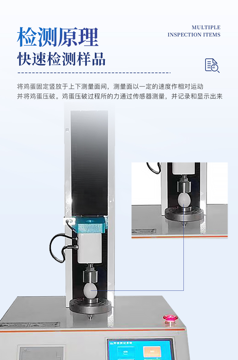 蛋壳强度测定仪(Eggshell Strength Tester)是衡量鸡、鹅、鸭等禽蛋蛋壳质量的重要指标。鸡蛋蛋壳的强度与种鸡的种蛋入孵率、孵化率、鸡苗质量以及商品蛋鸡的鲜蛋产量密切相关??侵始崾档牡昂苌倨扑?能较久且完好地保存其营养价值,有良好的商品性。蛋壳质量下降,对许多养鸡场造成的经济损失相当严重。而鸡蛋壳强度与种鸡的品种、遗传和食料密切相关。正确掌握蛋壳强度有关指标尤为重要。蛋壳强度测定仪操作简单,测量快速准确,对蛋品质分析以及家畜育种提供直接数据,是大型养鸡场,食品加工厂和科研院所检测鸡蛋品质指标的**选择。