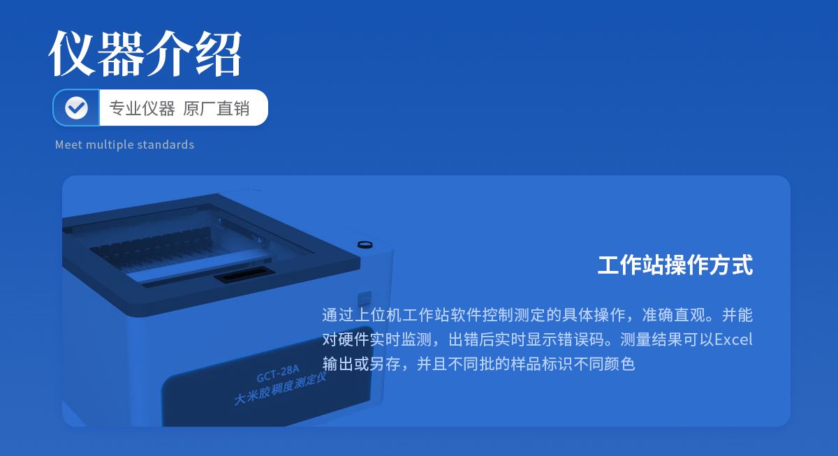 产品用途: 适用于粮油检测大米胶稠度的测量 工作条件: 电源:220--230伏, 50Hz;环境温度:5℃-40℃;相对湿度:10-85% 技术指标: ◆ 全样品位:8位, ◆ 样品位可独立