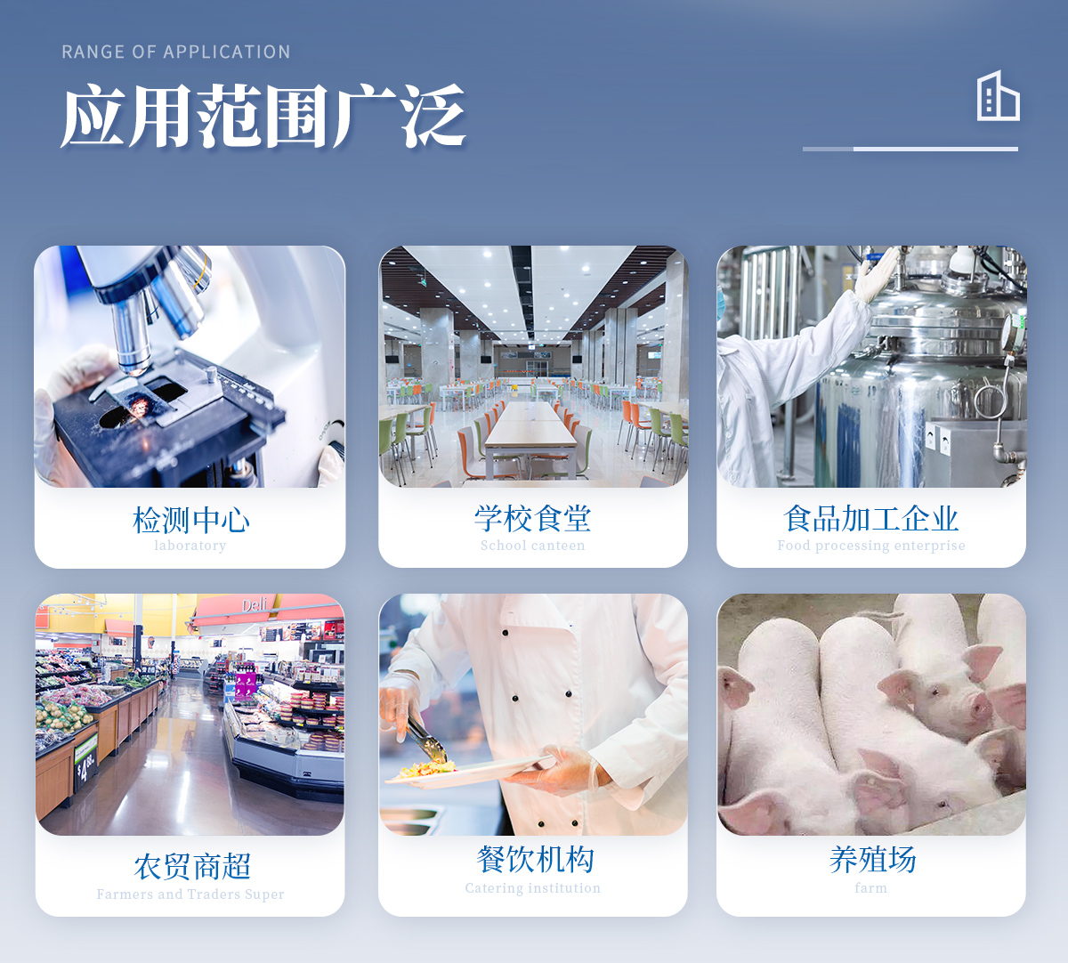 全自动农兽药残留检测仪可对各种蔬菜水果中有机磷和氨基甲酸酯类农药残留;各种肉类水产食品中瘦肉精激素类残留,抗生素残留,兽药残留,水产品药物残留等百余种项目进行快速检测。该设备广泛应用于蔬菜批发市场、超市、商场、食药监等部门的蔬菜和水果中的农药残留检测。