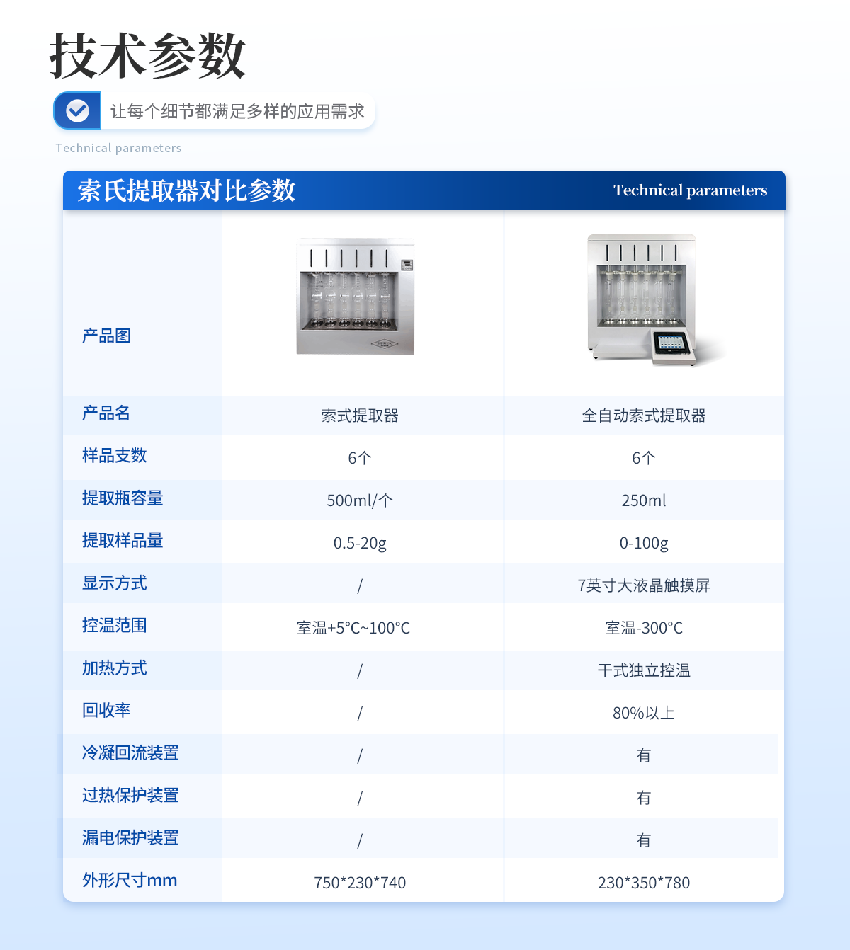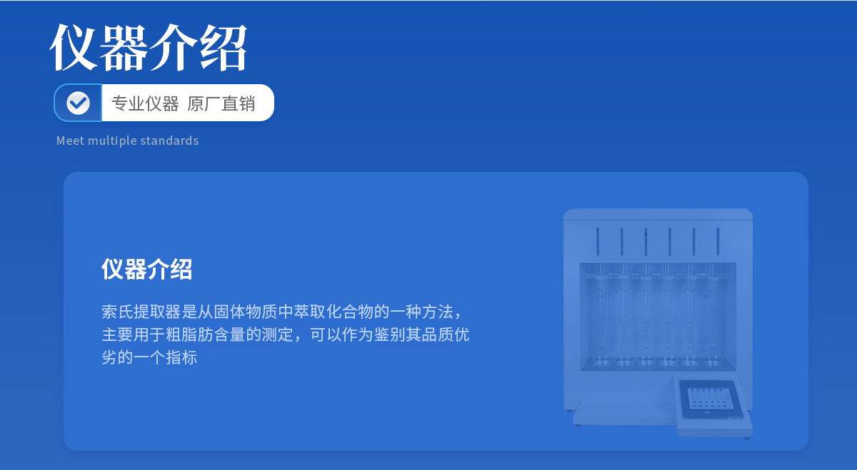 产品介绍: 索氏提取器是从固体物质中萃取化合物的一种方法,主要用于粗脂肪含量的测定,广泛存在于提取粮食、饲料、油料、土壤,毛脂等各种样品脂肪的含量,可以作为鉴别其品质优劣的一个指标,···