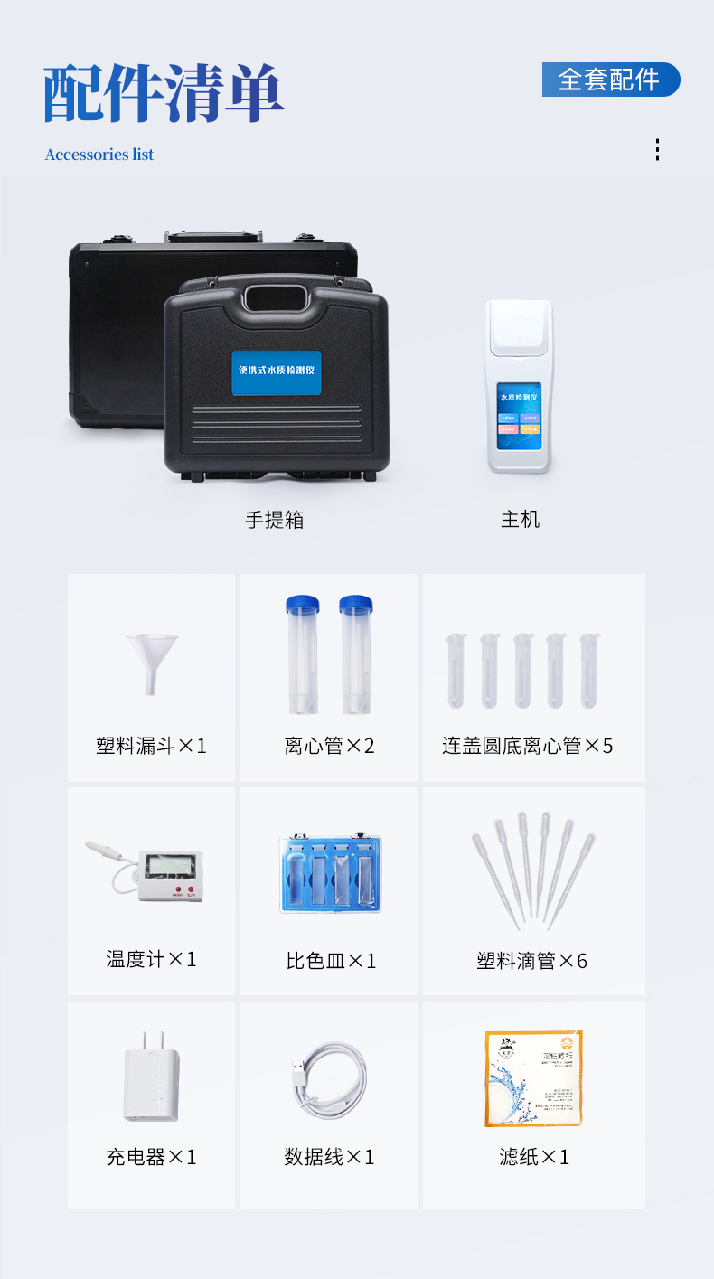 | 安卓智能系统,操作更佳简便快捷; | 配置监管平台,检测结果可直接无线传至平台,进行水质长短期分析,辅助管理。 | 内置操作流程、操作简单、无需培训、直接上手; | 检测速度快,现场读取数据 | 便携式体积小,重量轻,方便户外检测 | 外形小巧美观,工作稳定免维护,具有较好的性价比 | 采用进口冷光源,光学性能稳定,寿命长达10万小时 | 交直流两用,内置充电锂电池,环保耐用可支持连续室内外工作。 |