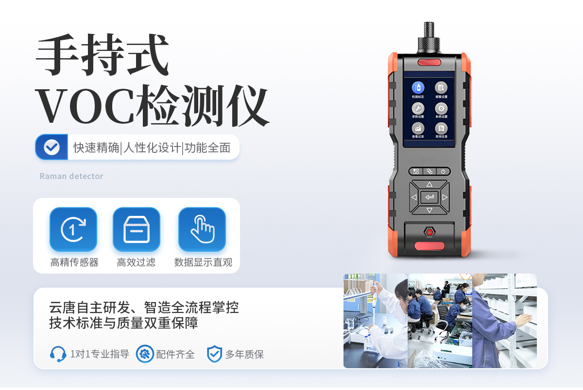 手持式VOC检测仪主要用于检测车间的VOC浓度、厂界的VOC浓度、固定污染源排放VOC浓度、安全事故应急监测、废气排放浓度达标快速检测。