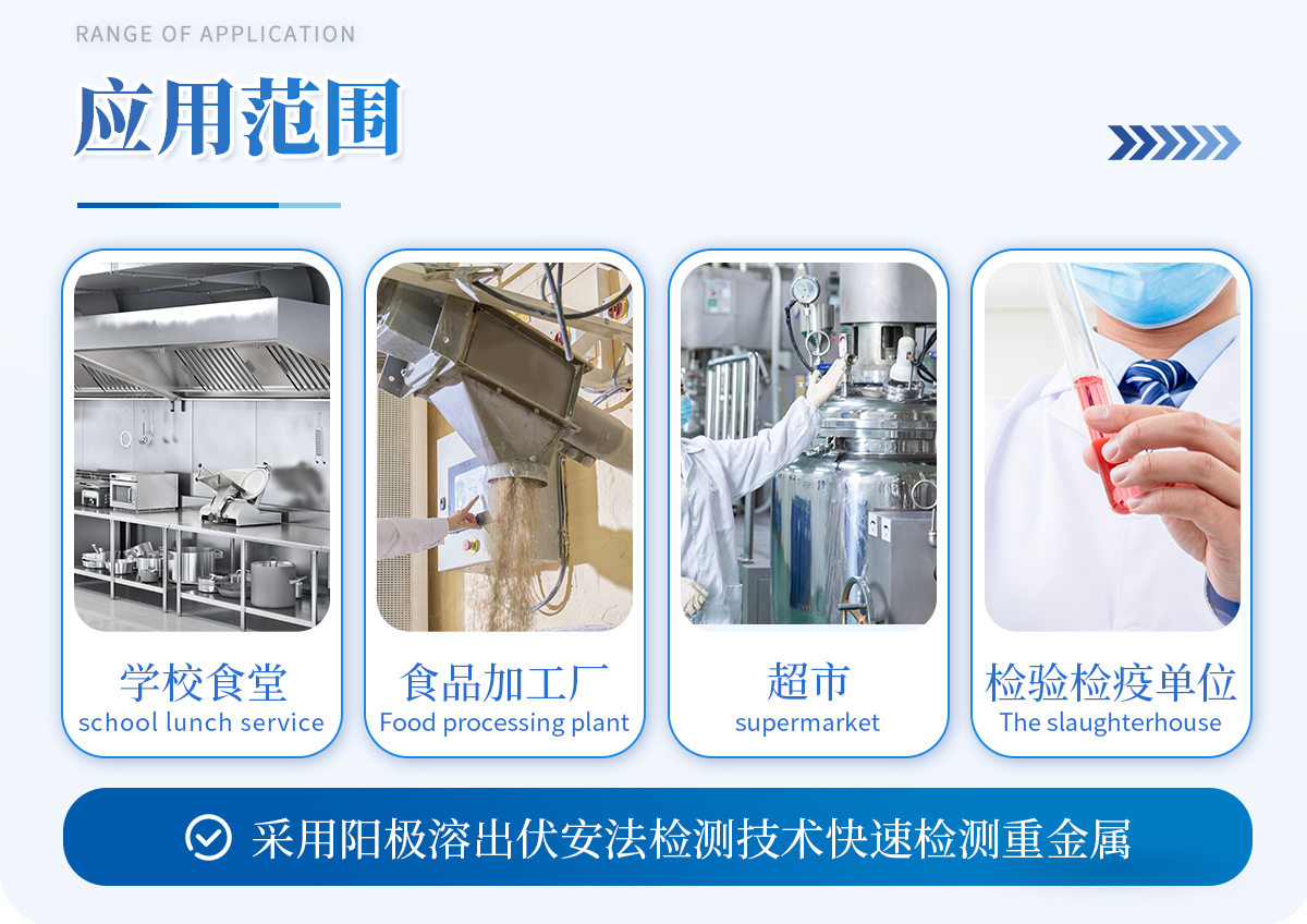 可快速检测重金属铅、镉、铜、锌、汞、砷等。