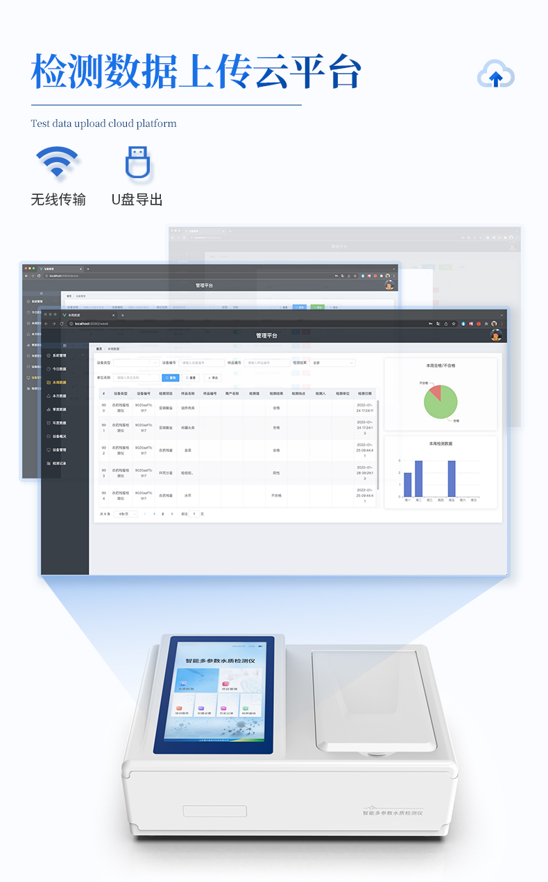 COD氨氮总磷快速检测仪主要检测水质COD、氨氮、总磷浓度指标,兼具智能数据分析功能,图表、列表显示数据,分析一目了然;高清晰度彩色液晶触摸显示屏,Android智能操作系统,中文显示界面,中英文键盘,人性化操作,使用更简单。
