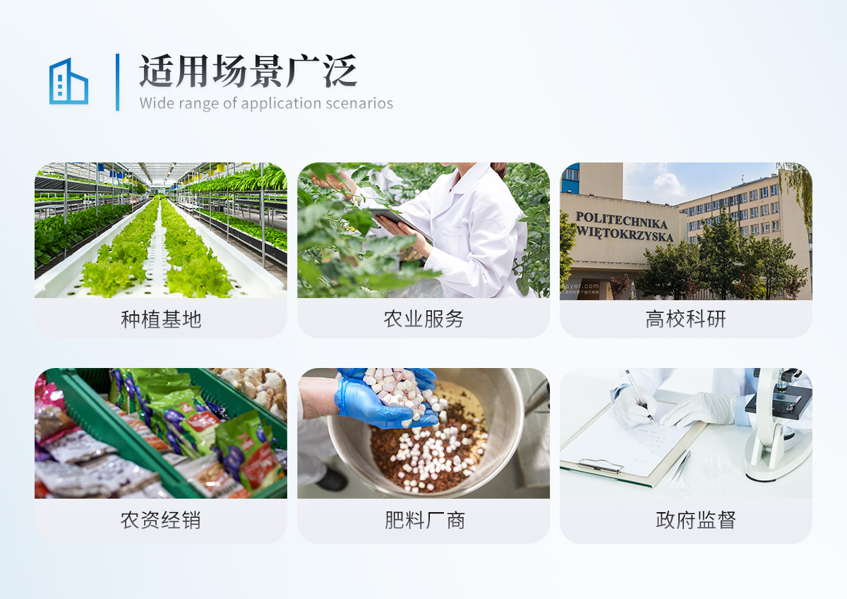 | 仪器测定项目:测定土壤、肥料、食品、蔬菜、水果中重金属(铅、砷、铬、镉、汞、铁、锌、锰、铜)。 | 仪器扩展测试项目:仪器可以扩展测定土壤、肥料养分含量。 |